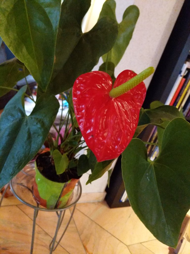 With my anthurium sitting at 50% humidity and 20C under indirect light, I doubt that it is very happy. (I also found in writing this that they need a 6 week rest period in winter at 15C to produce flowers in Spring — so much for being easy to care for.)