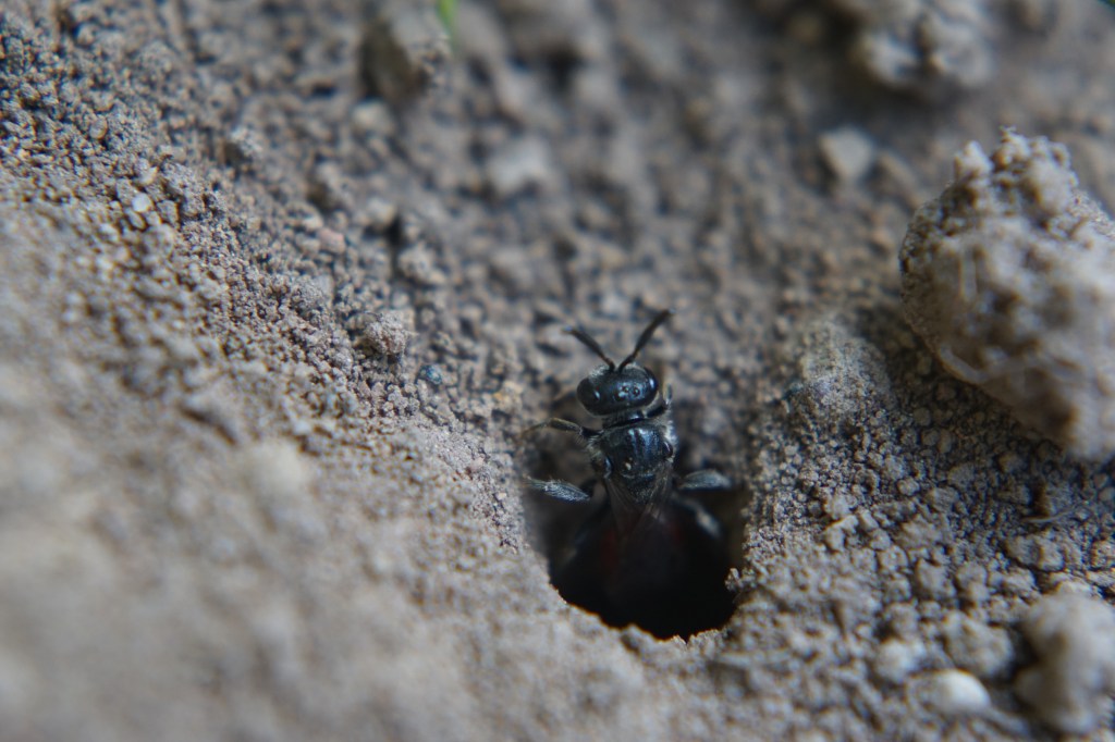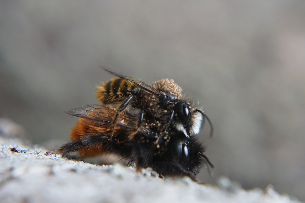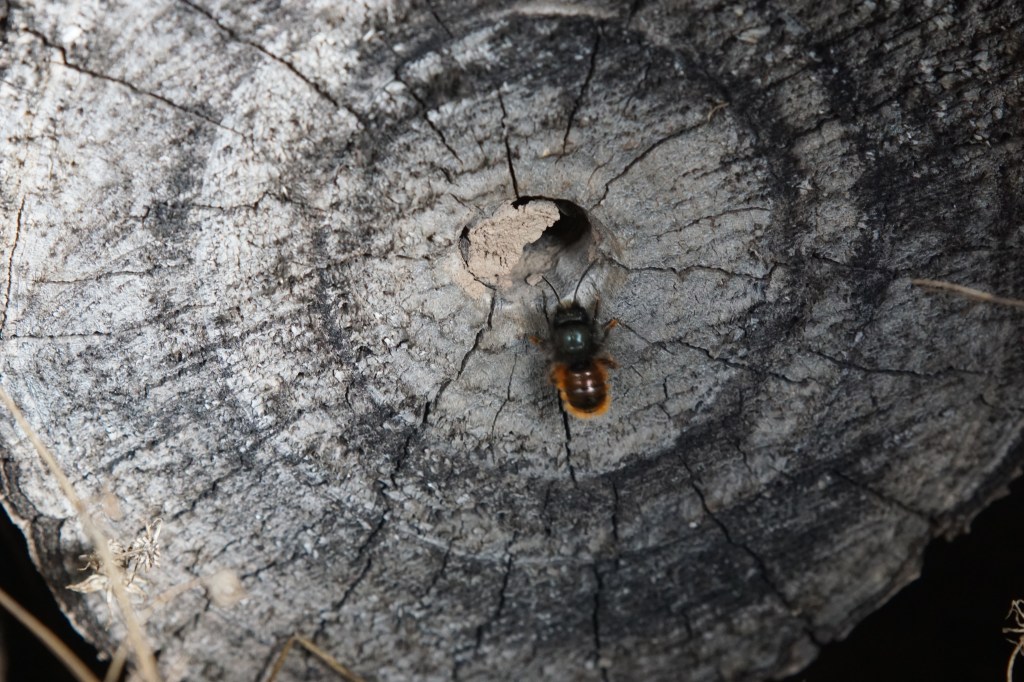 Also known as the European Orchard bee, I found a colony of these early risers in March making nests and coupling in several mating pairs.