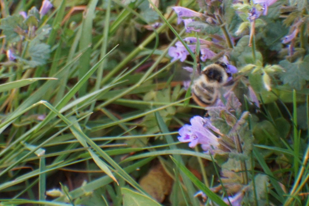 The bumblebee below is likely a Queen Carder Bee, although I can’t pinpoint it down without a clearer photo. The brazen back was the first clue, with lighter strips of fluffy yellow towards the tail a second; although there are distinct differences between the Moss Carder bee and the Common Carder Bee as the two likely candidates.