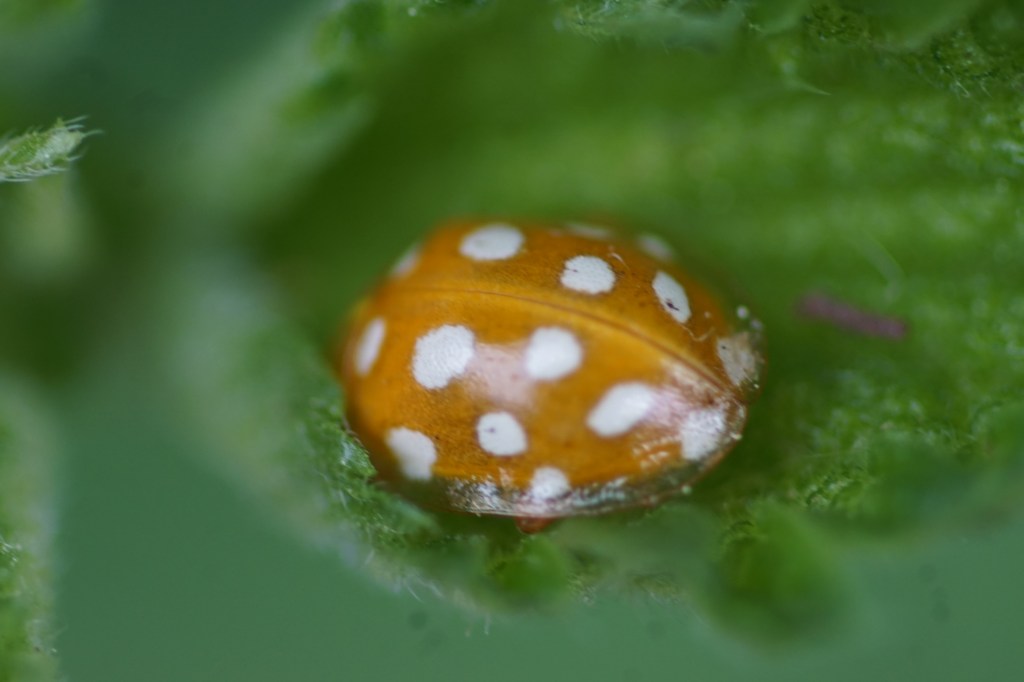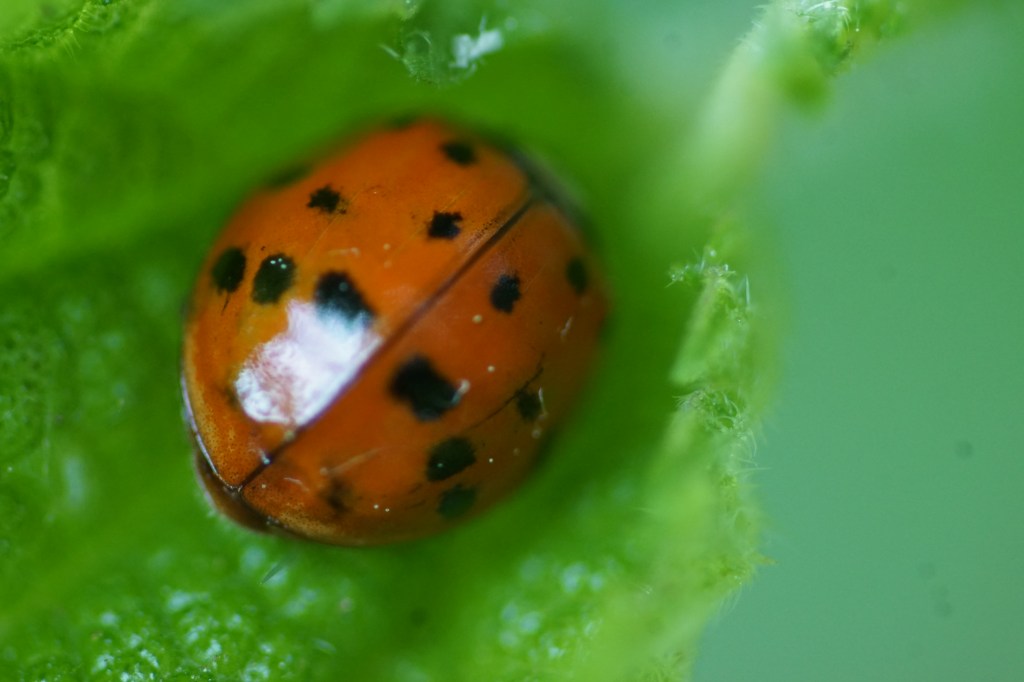 Or when was the last time that you stared down a ladybug as though it were a bull charger? This one probably fought a dozen such plaintiffs looking for a fight, as I gauge it’s bravery by its posture and gaze as I turn about it. It turns resolutely to look at me as I move about it for a different angle, egging me on for a fight.