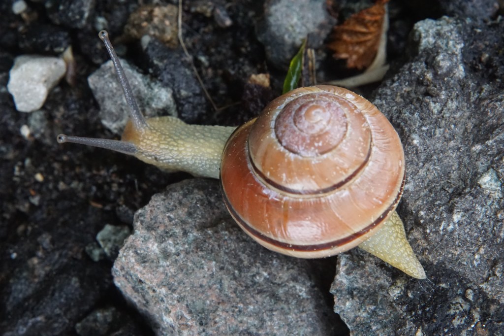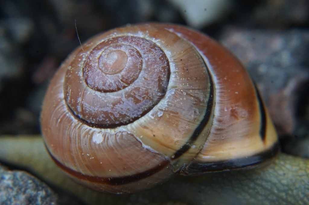 Cepaea nemoralis – Also known as the Grove Snail, this is the most common land snail in Europe. When you see the brown ring around the neck, it makes sense why it’s more commonly known as the “Brown-Lipped” snail. They only live to be 7-8 years old, with only half of the 30-50 eggs surviving each year. They were living in the same bushes as the Roman snails above, but apparently is the best snail home in the entire neighborhood from what I’ve seen so far.